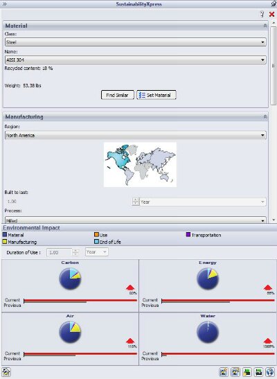 A carbon footprint calculator is extremely useful in assessing the environmental impact of different designs. Materials can be evaluated in terms of environmental factors as well as for material and useability concerns. A report can be generated comparing the pros and cons of one desgn concept over another.